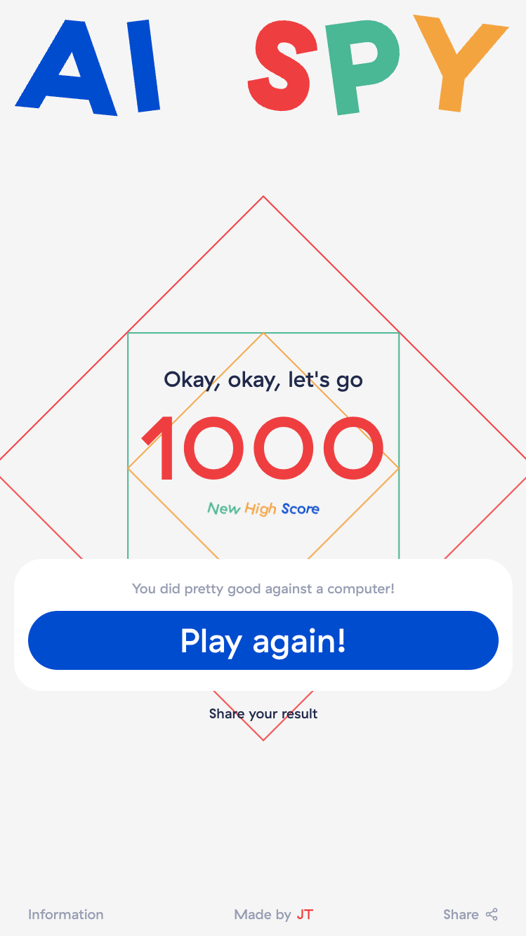 Finally you don't need to have friends to play I Spy, you can do it with just your phone now. Its worth a play for sure, aispy.io