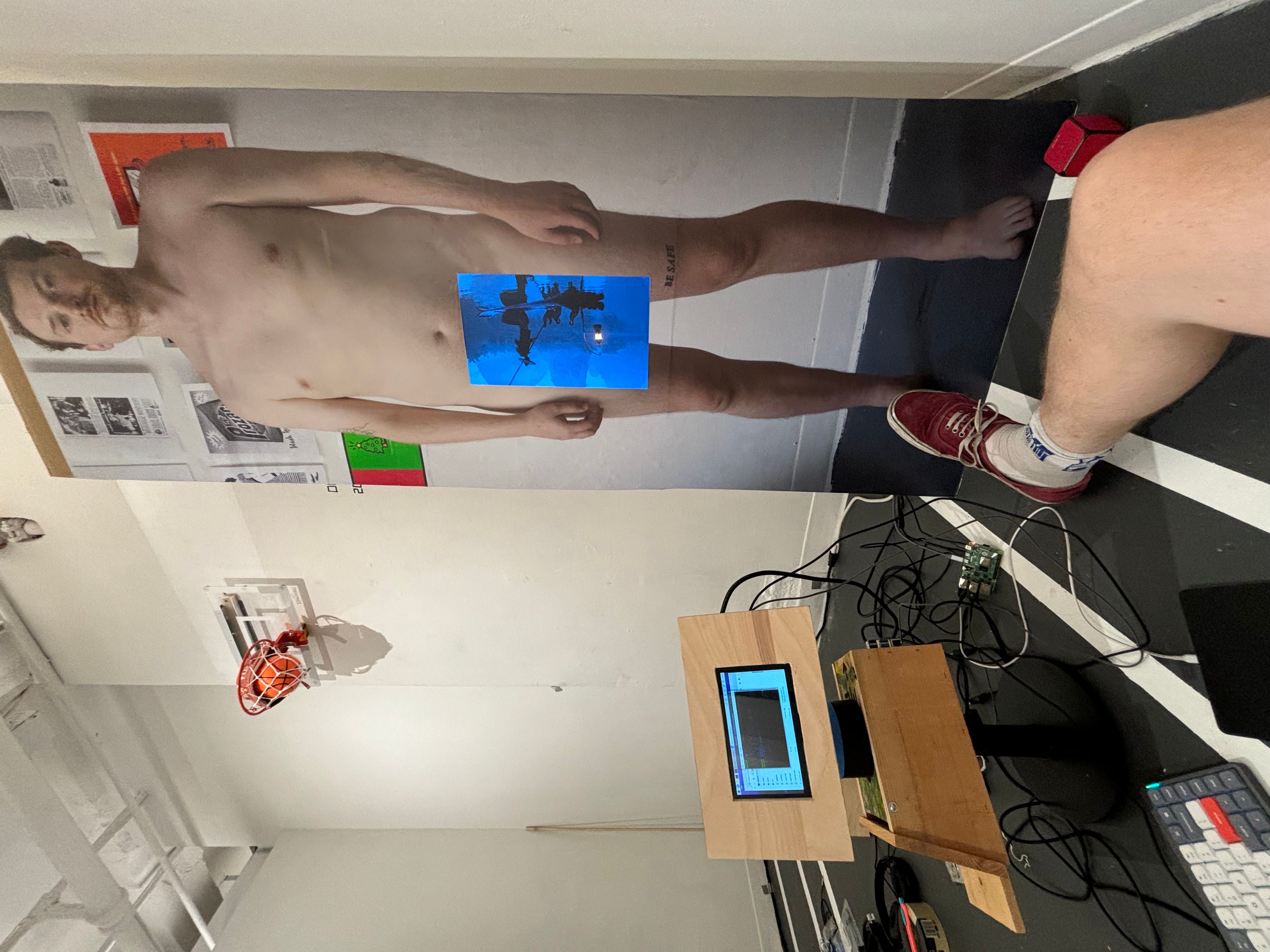I had a small touch screen raspberry pi for users to draw on, with a second screen installed in the crotch