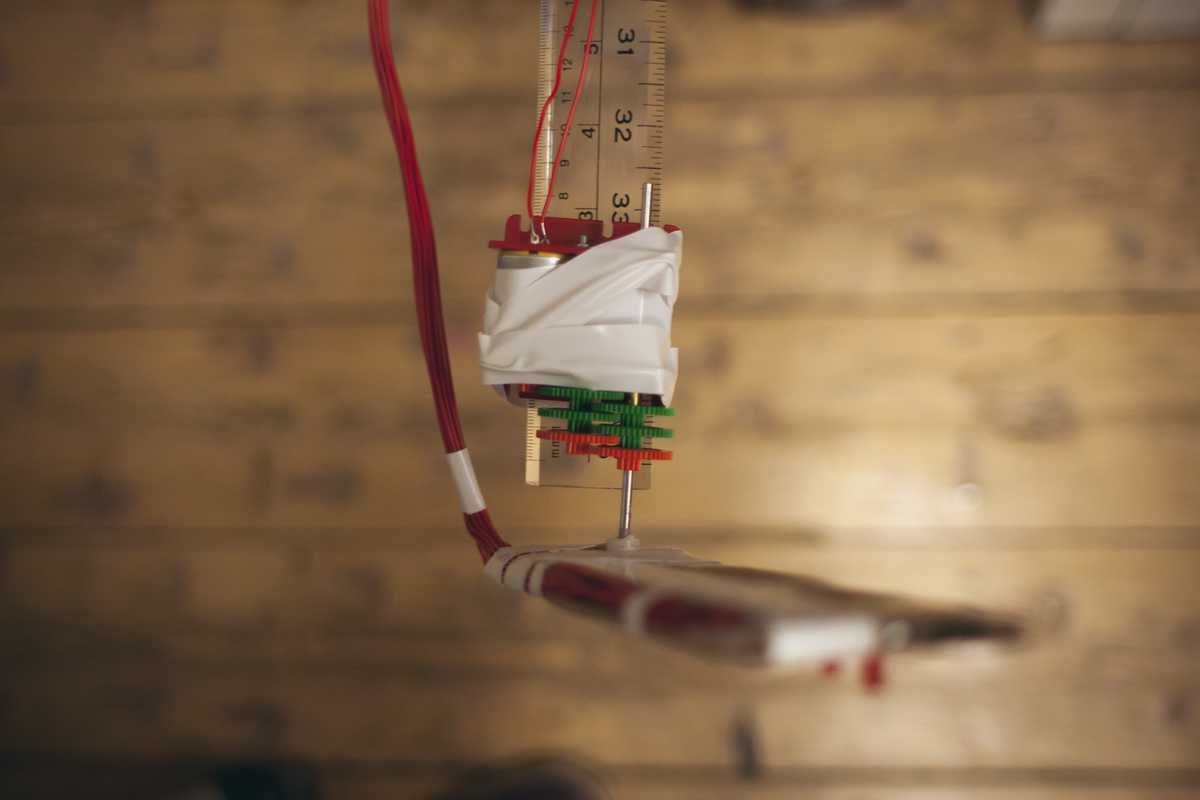 I hooked up electronic drums via MIDI to a set of LEDs and made it so that each LED had a corresponding drum hit. I then attached the set of LEDs to a motor on the end of a stick, so that then when the motor turned (it did a complete rotation in about 20 seconds) and a camera pointing towards it took a 20 second exposure, it basically captured a digital footprint of the bars that were played by the drummer.