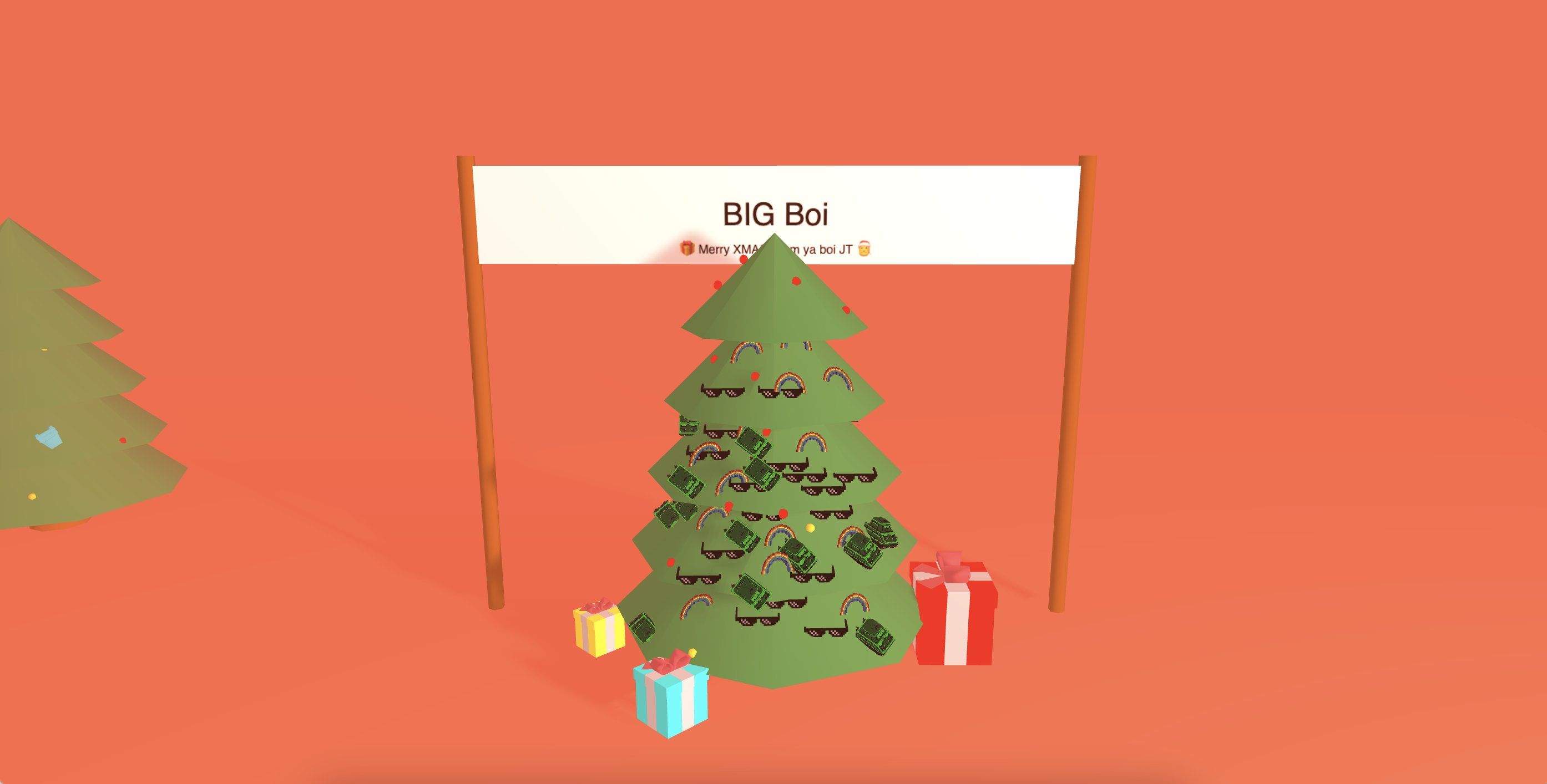 I wont replicate it here, as I did it "out in the open" on Twitter, but I made a little Christmas tree creator and viewer. Made in a day so very much corners have been cut, but its still trying to keep my ThreeJS momentum going